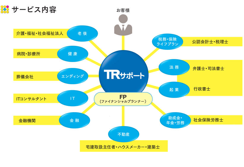 ・ファイナンシャルプランナーとして、会計士・税理士などの専門家ネットワークによりお客さまの課題や問題解決サポートします。