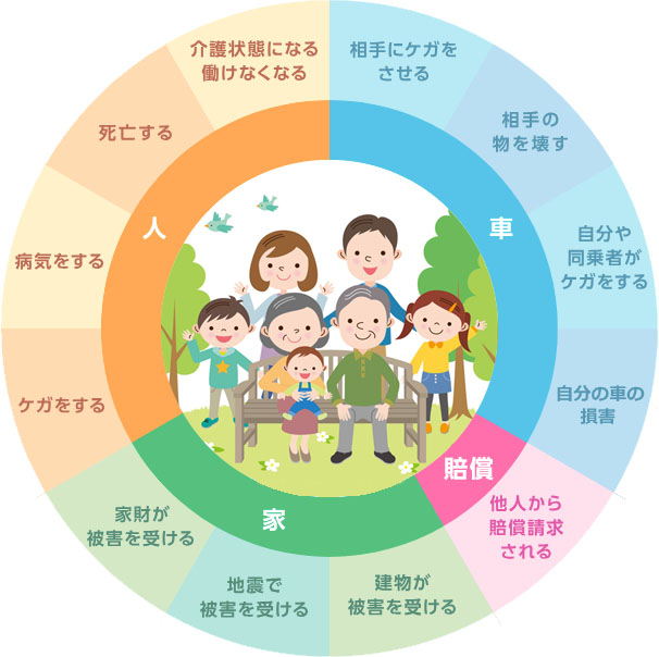 ご本人さまやご家族、自動車に搭乗中の方が事故でけがをされた場合の治療費や休業損害など、さまざまな出費が生じます。